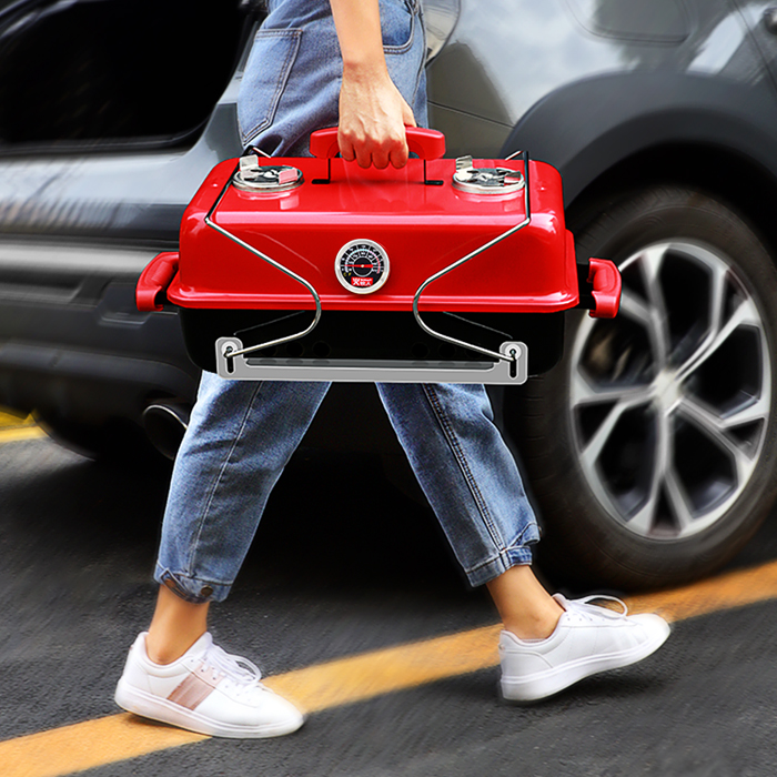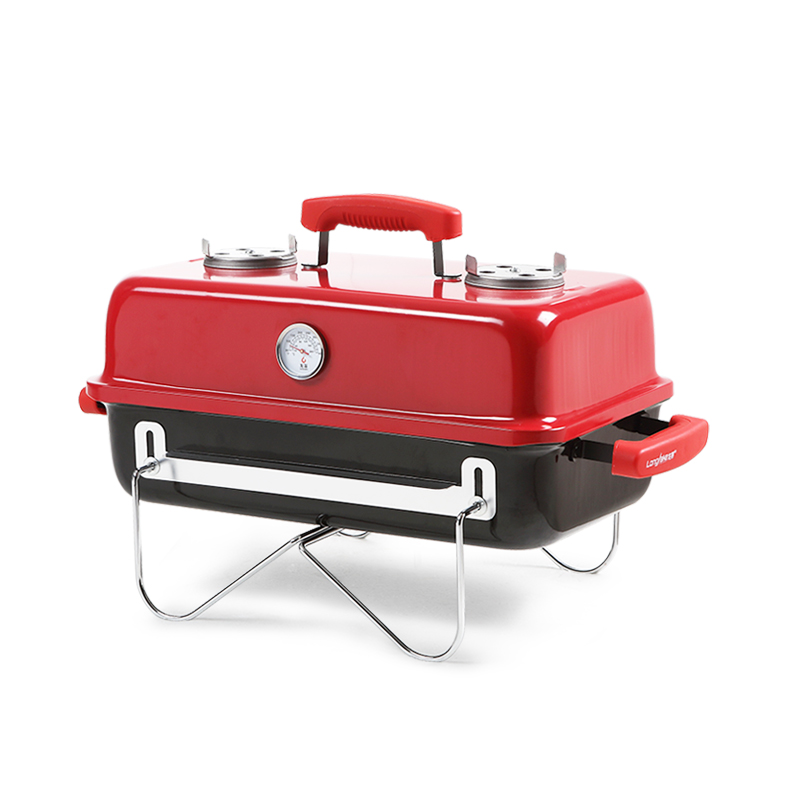 Asador / parrilla portátil, llévala contigo donde quieras, cuenta con un cuerpo de acero robusto, parrilla de acero inoxidable y termómetro. Medidas: 58X30X37.5